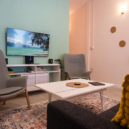 The apartment offers a balcony and a living room, as well as comforts like an air conditioner.
